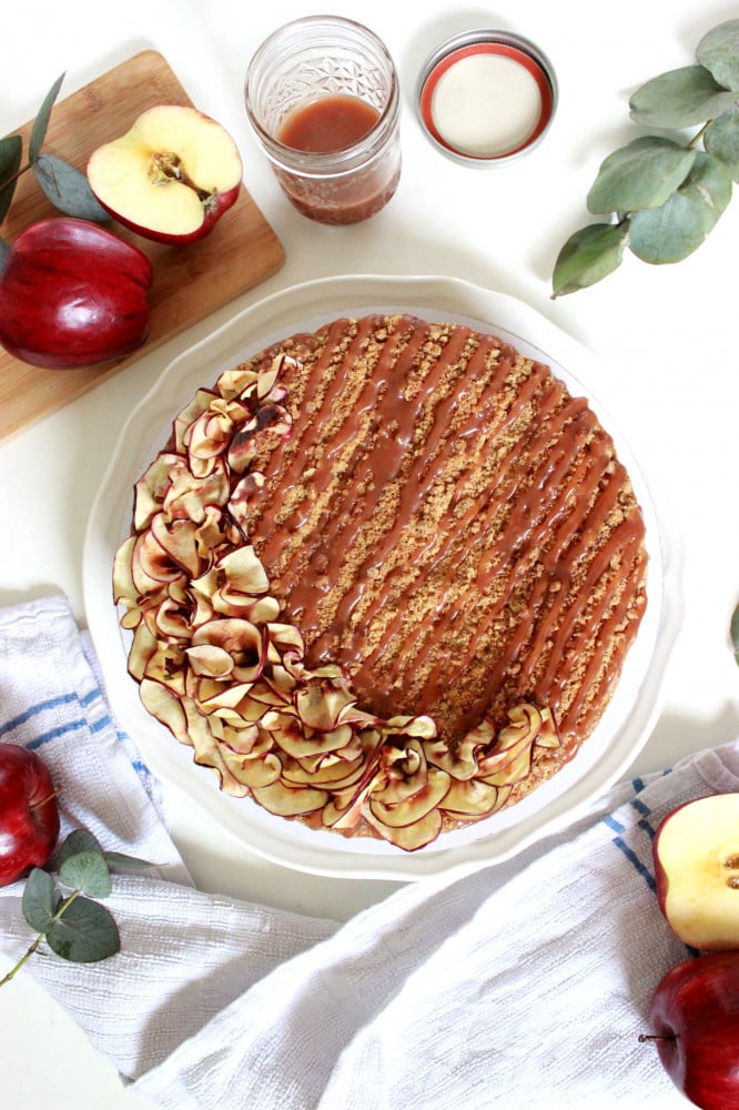 مزين بصوص الكراميل و شرائح التفاح المجففة.