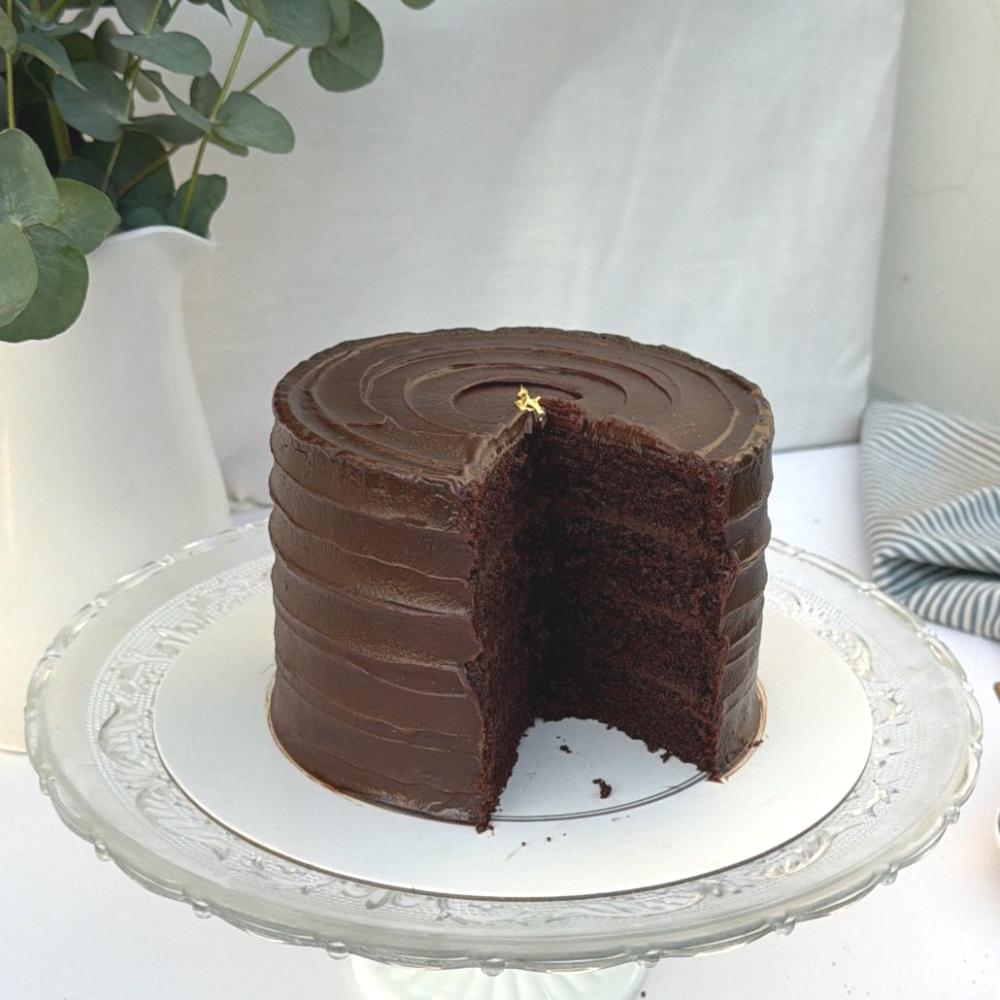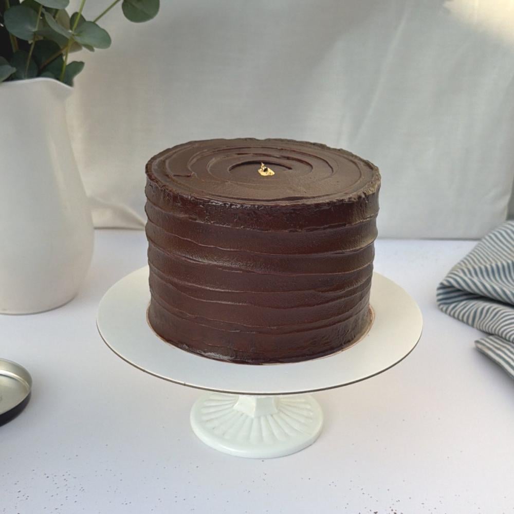 طبقات من كيكة الشوكلت وقناش الشوكلت الغني مزين بورق الذهب , مع امكانية اضافة حشوة الكراميل المملح .