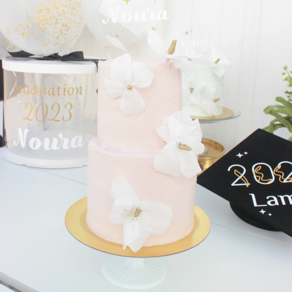 طبقات من الكيك الاسفنجي بنكهة الفانيلا وحشوة حسب اختياركم مزينة بورد من ورق الويفر , تناسب مع احتفالات الأحباب و الأمسيات اللطيفة .